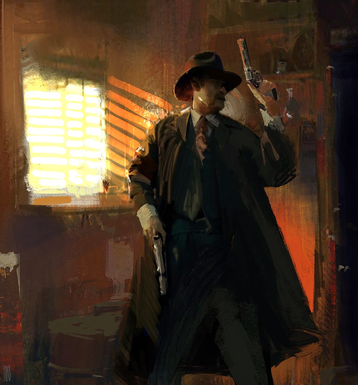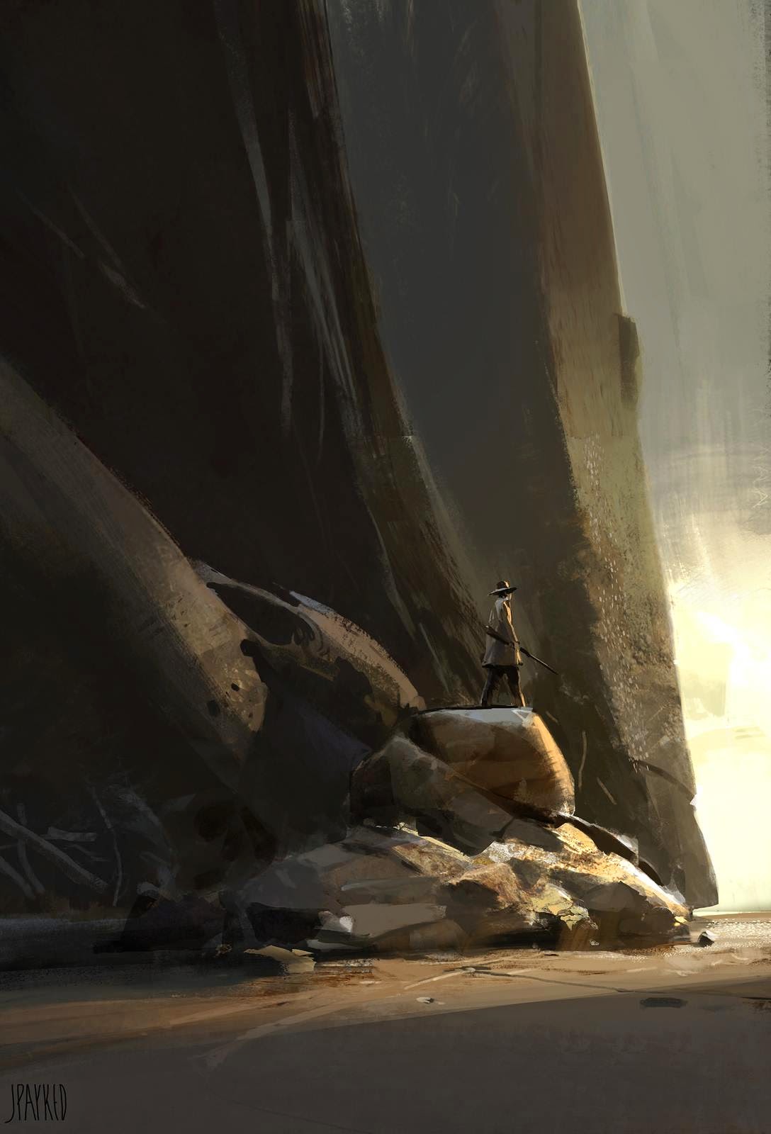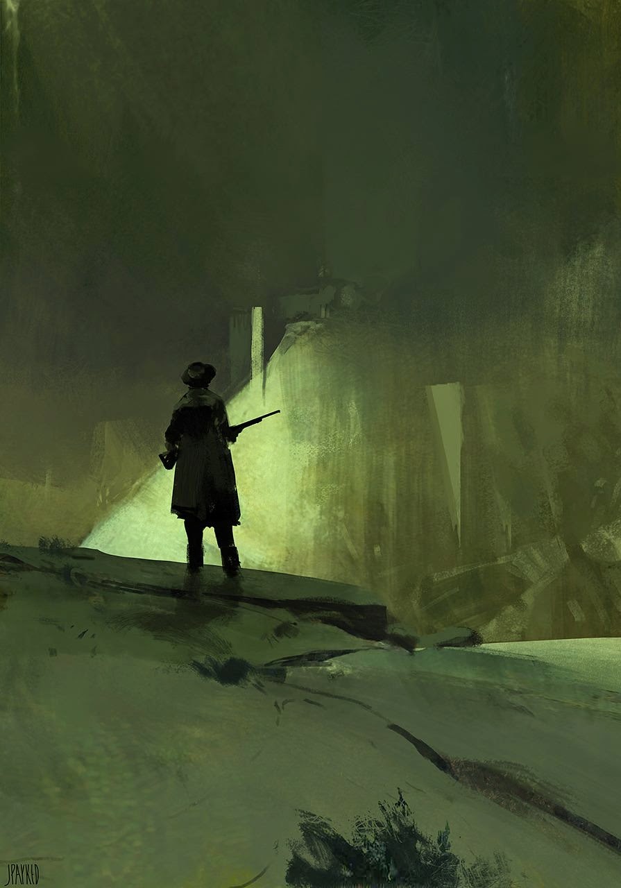 Here is an interior piece I did recently. The focus was the depict a space with the sense of fractured light dappling in. The narrative was quite simple in this one, basically two industrial workers trying to find an old engine outlet.