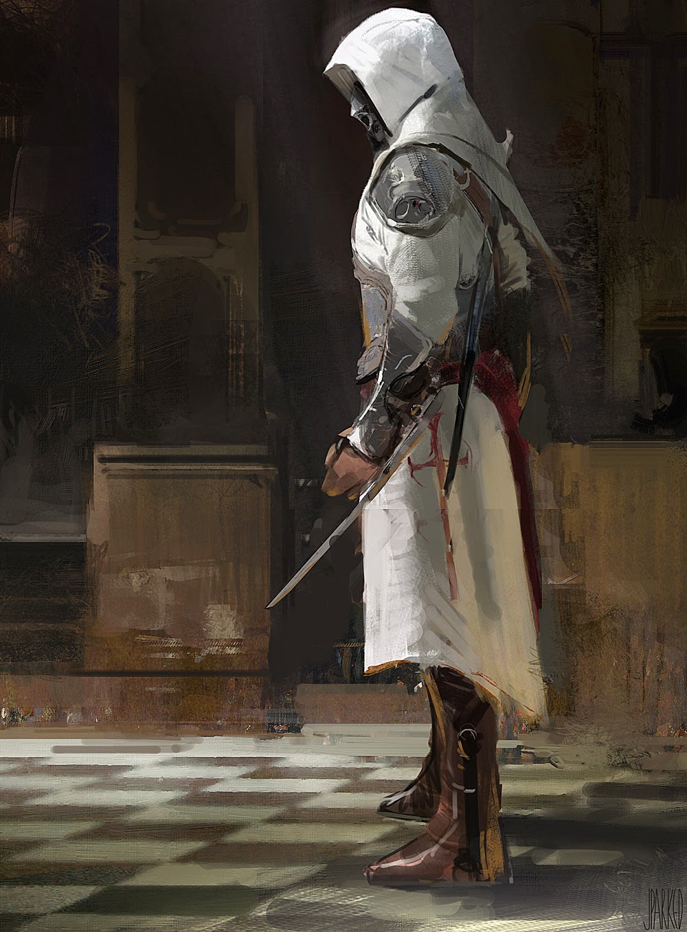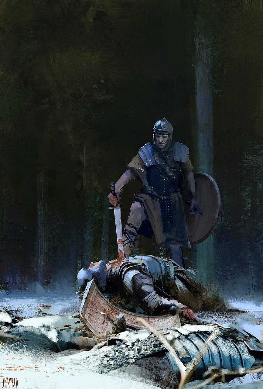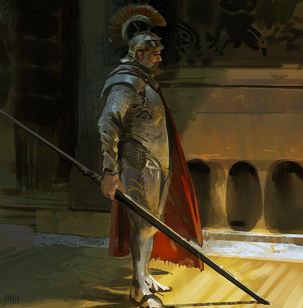 Here is an interior piece I did recently. The focus was the depict a space with the sense of fractured light dappling in. The narrative was quite simple in this one, basically two industrial workers trying to find an old engine outlet.